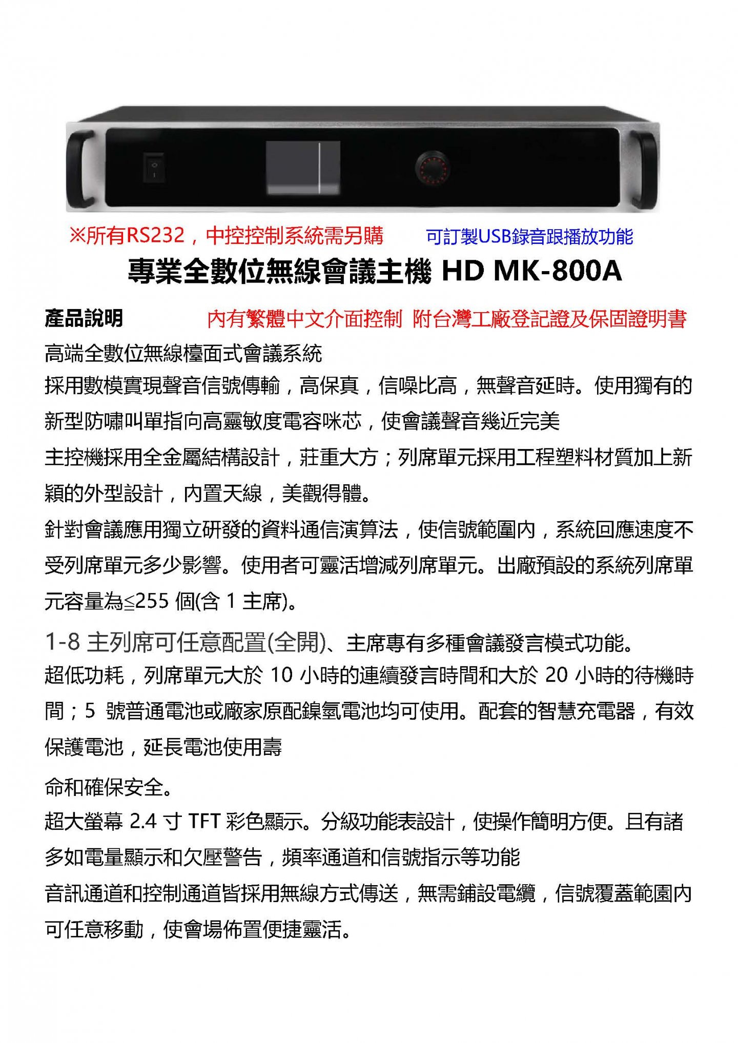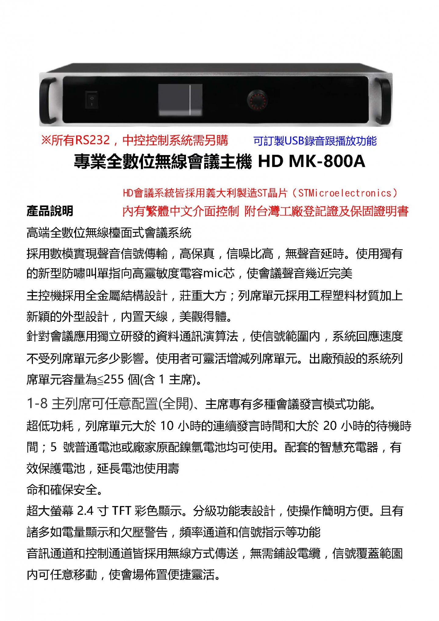 HD MK-800A 專業全數位無線會議系統