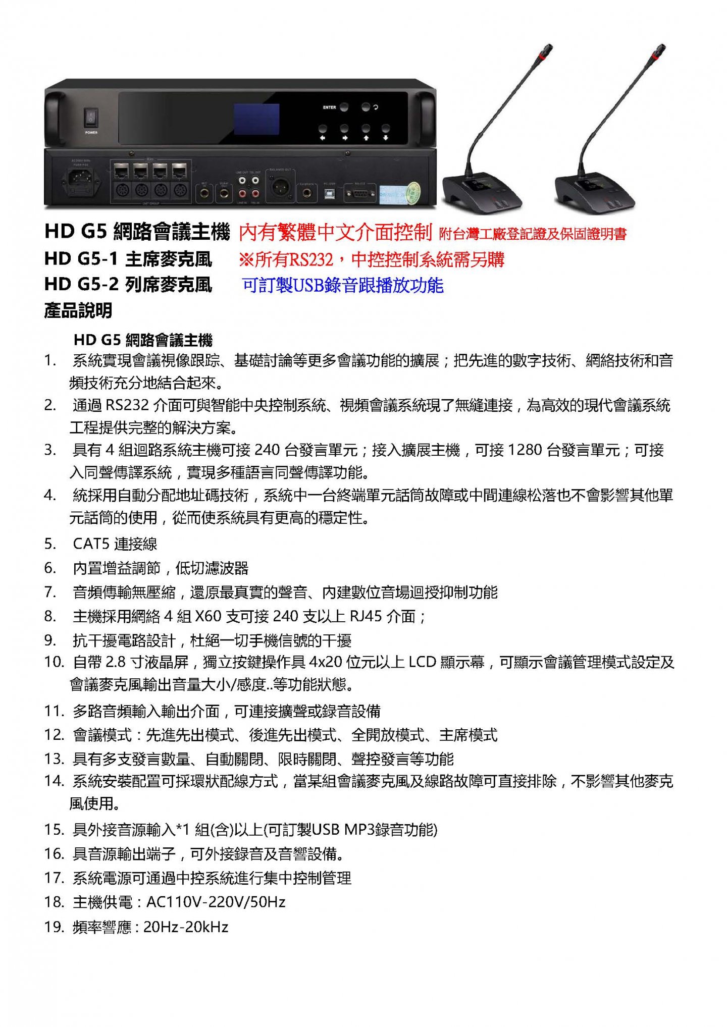 HD G5 Series 網路會議主機