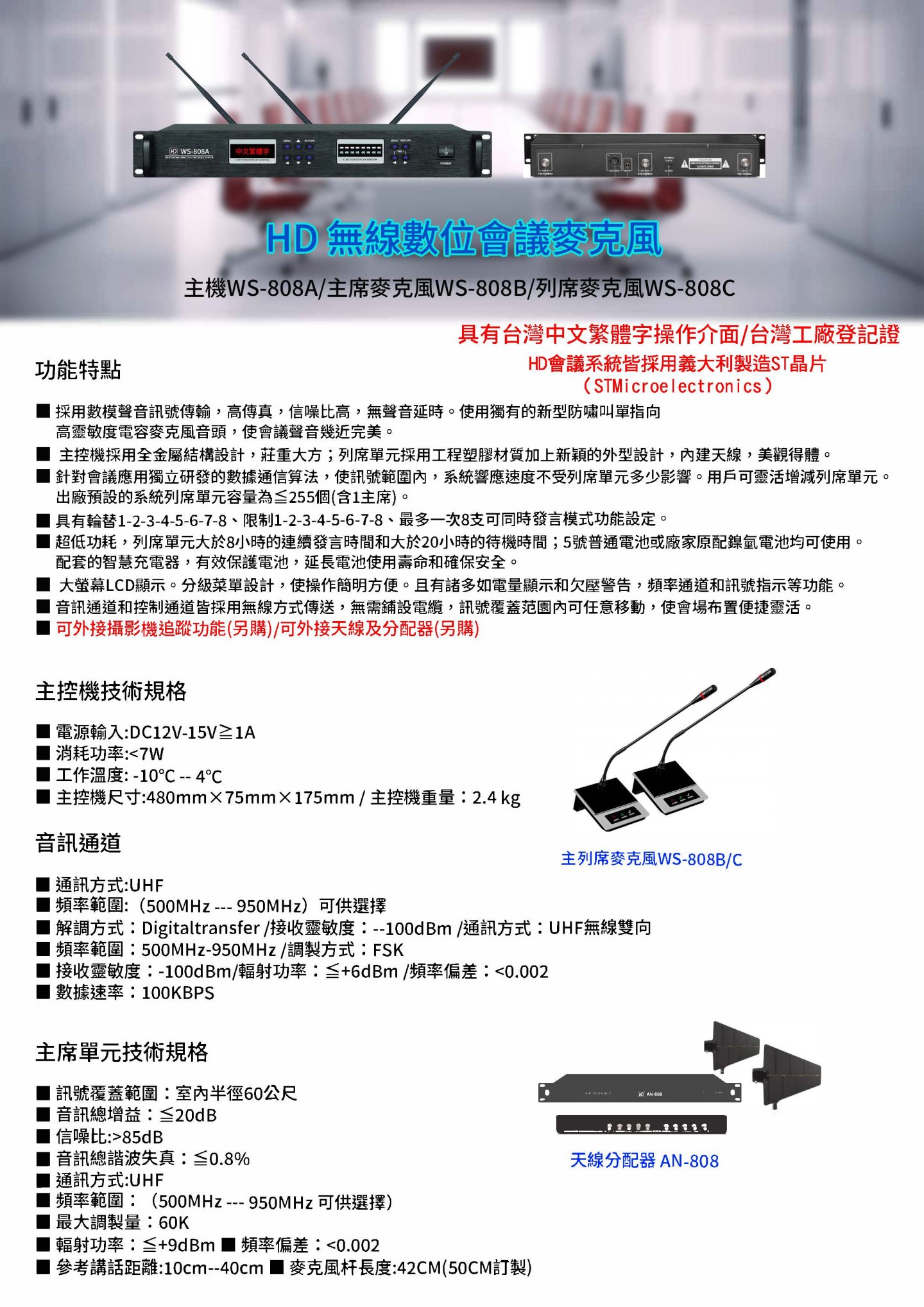 HD 無線數位會議麥克風 WS-808A/808B/808C