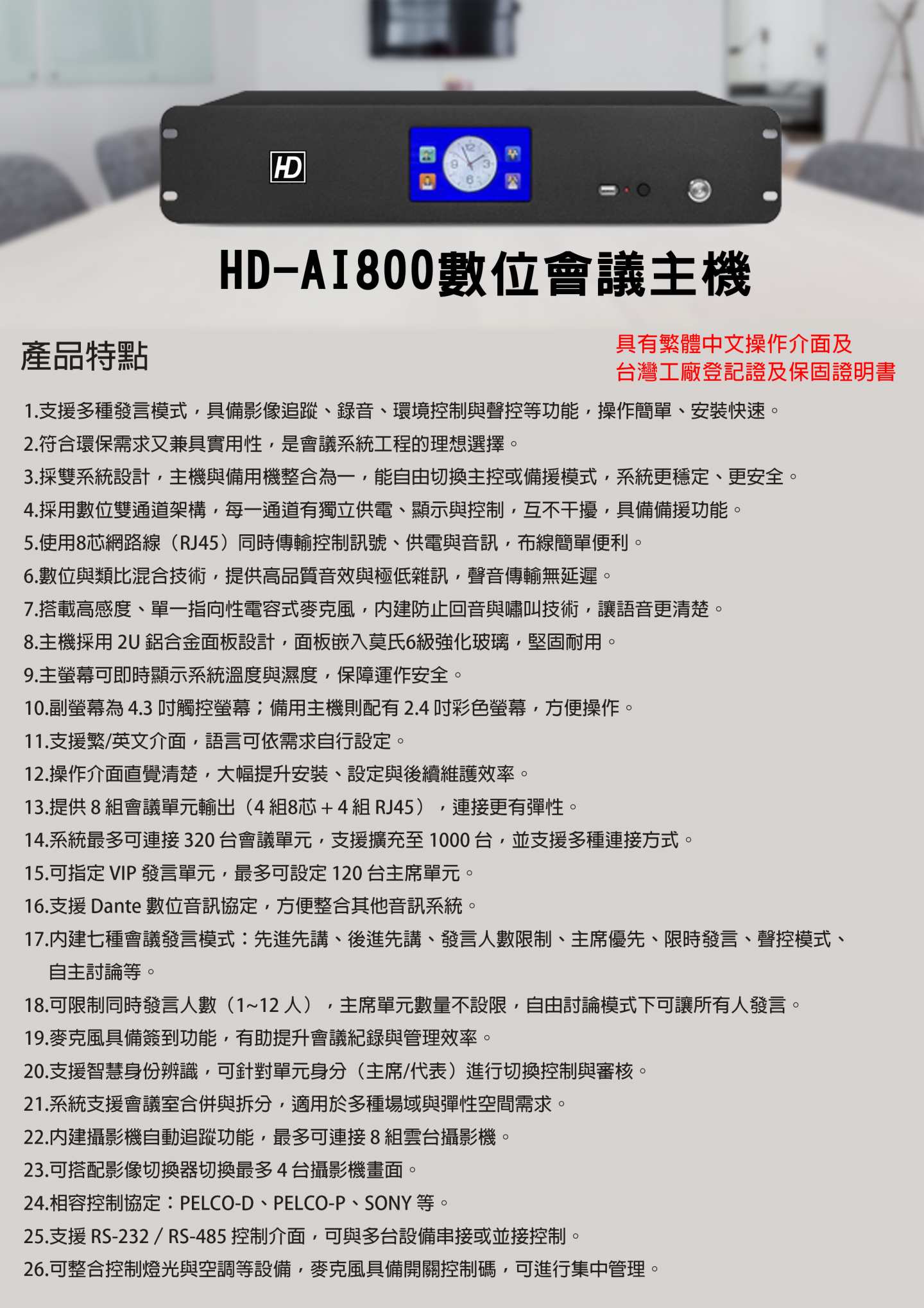 HD-AI800 數位會議主機