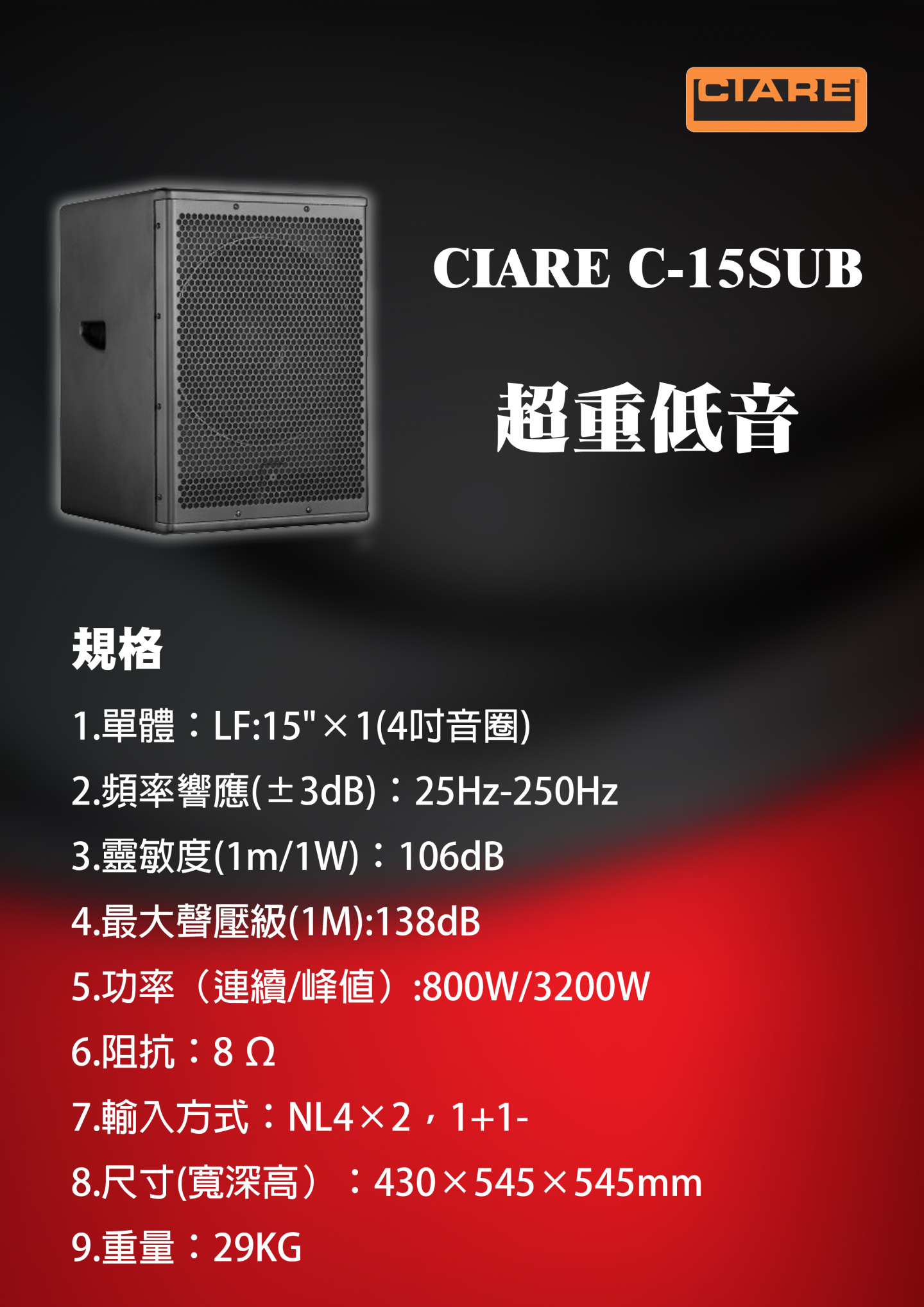 CIARE C-15SUB 超重低音