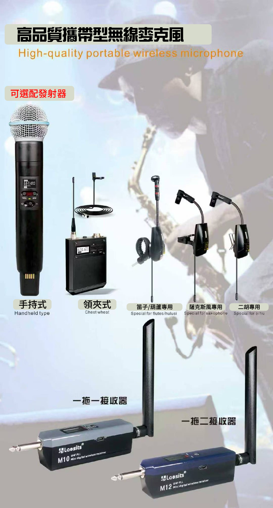 M10/M12 薩克斯風專用無線麥克風