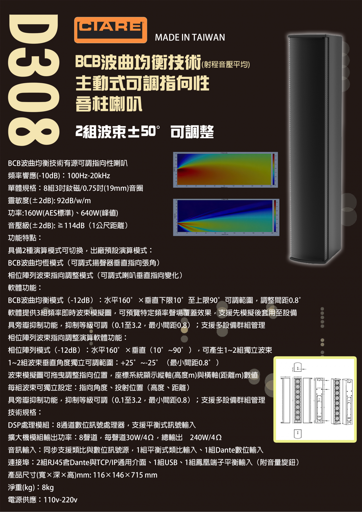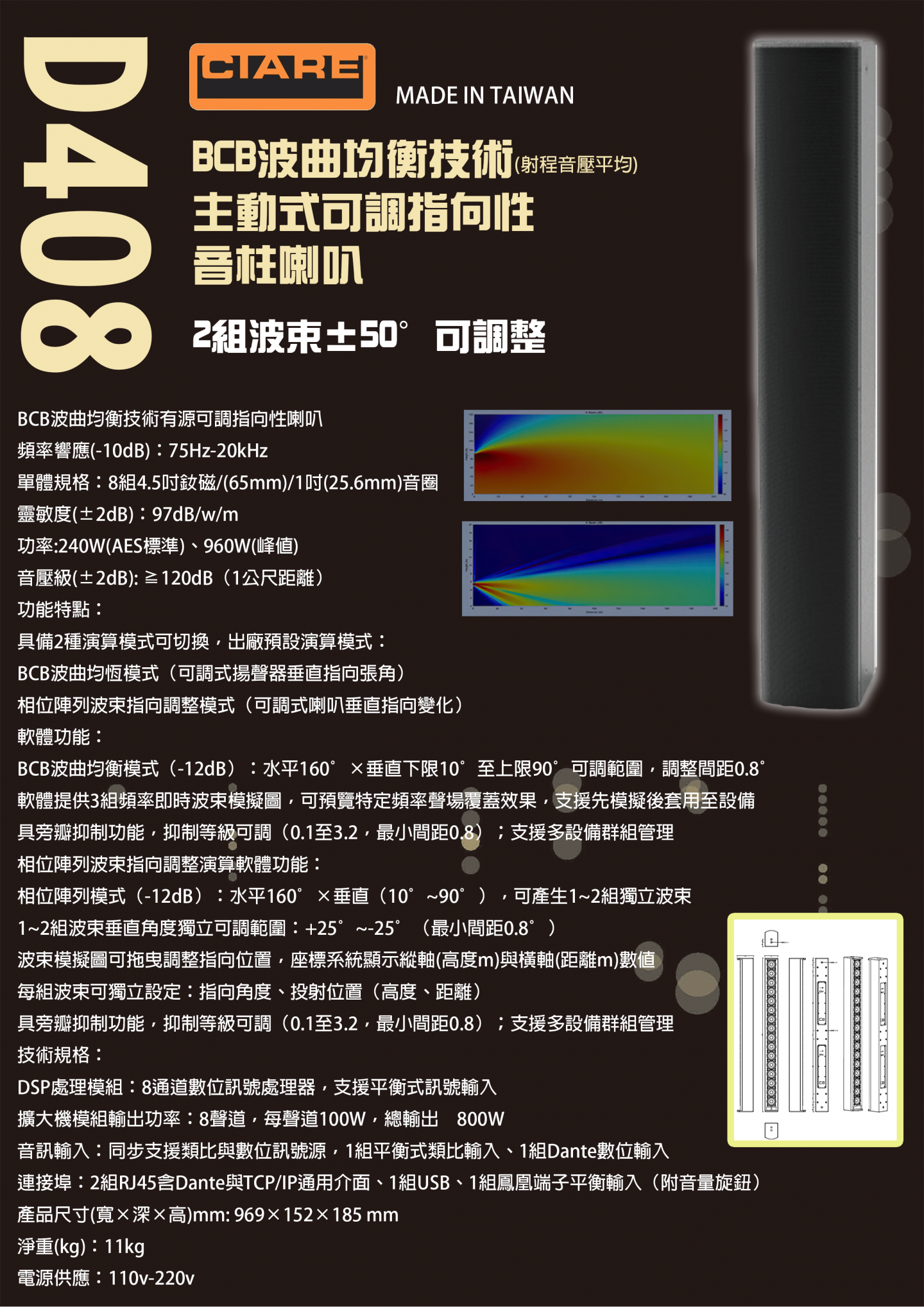 CIARE D308/D316/D408主動式可調指向性音柱