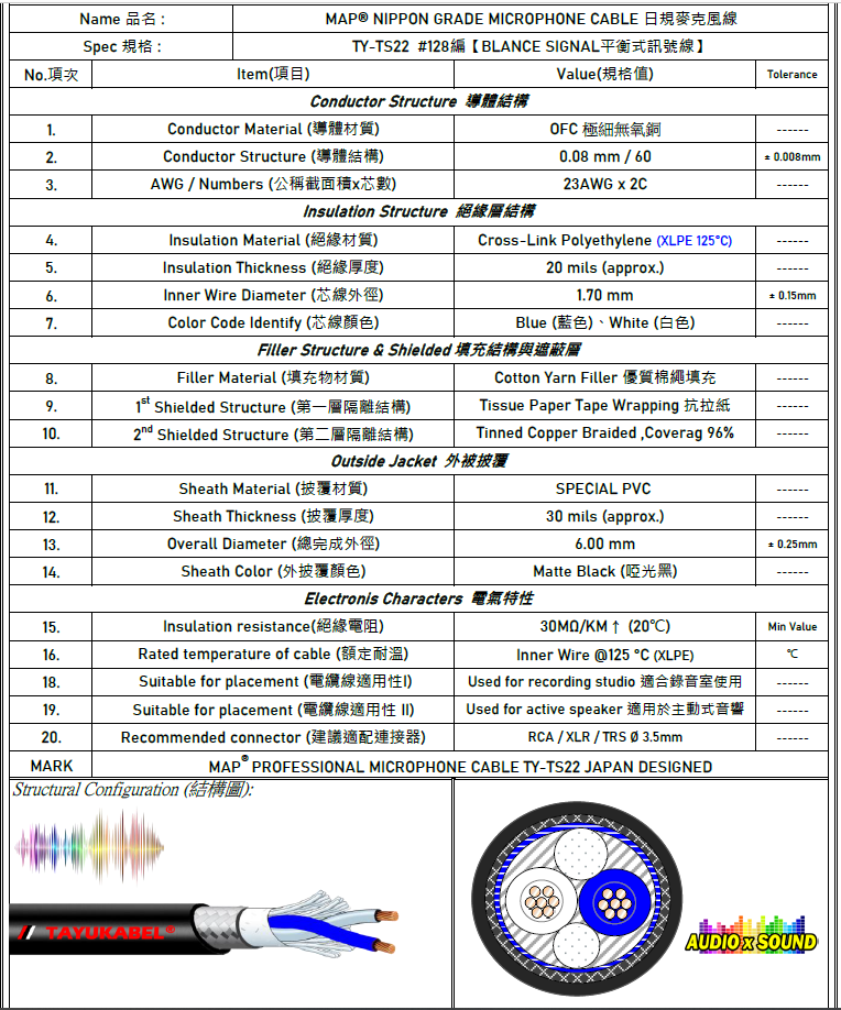 MAP® NIPPON GRADE MICROPHONE CABLE 日規麥克風線