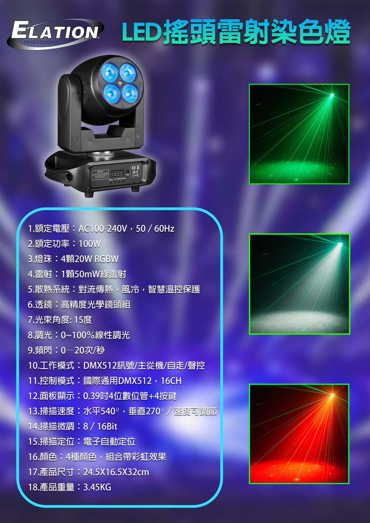ELATION 搖頭雷射染色燈
