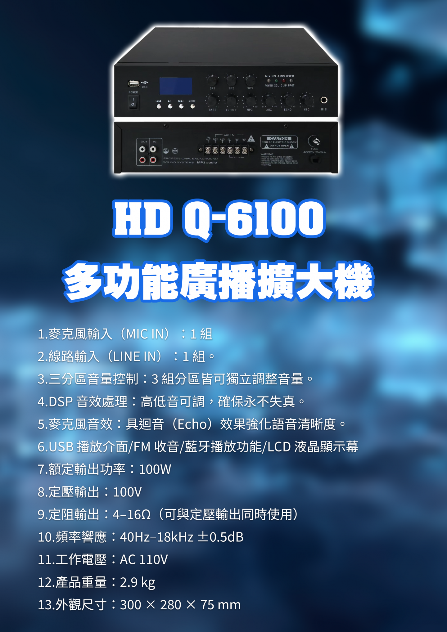 HD Q-6100多功能廣播擴大機