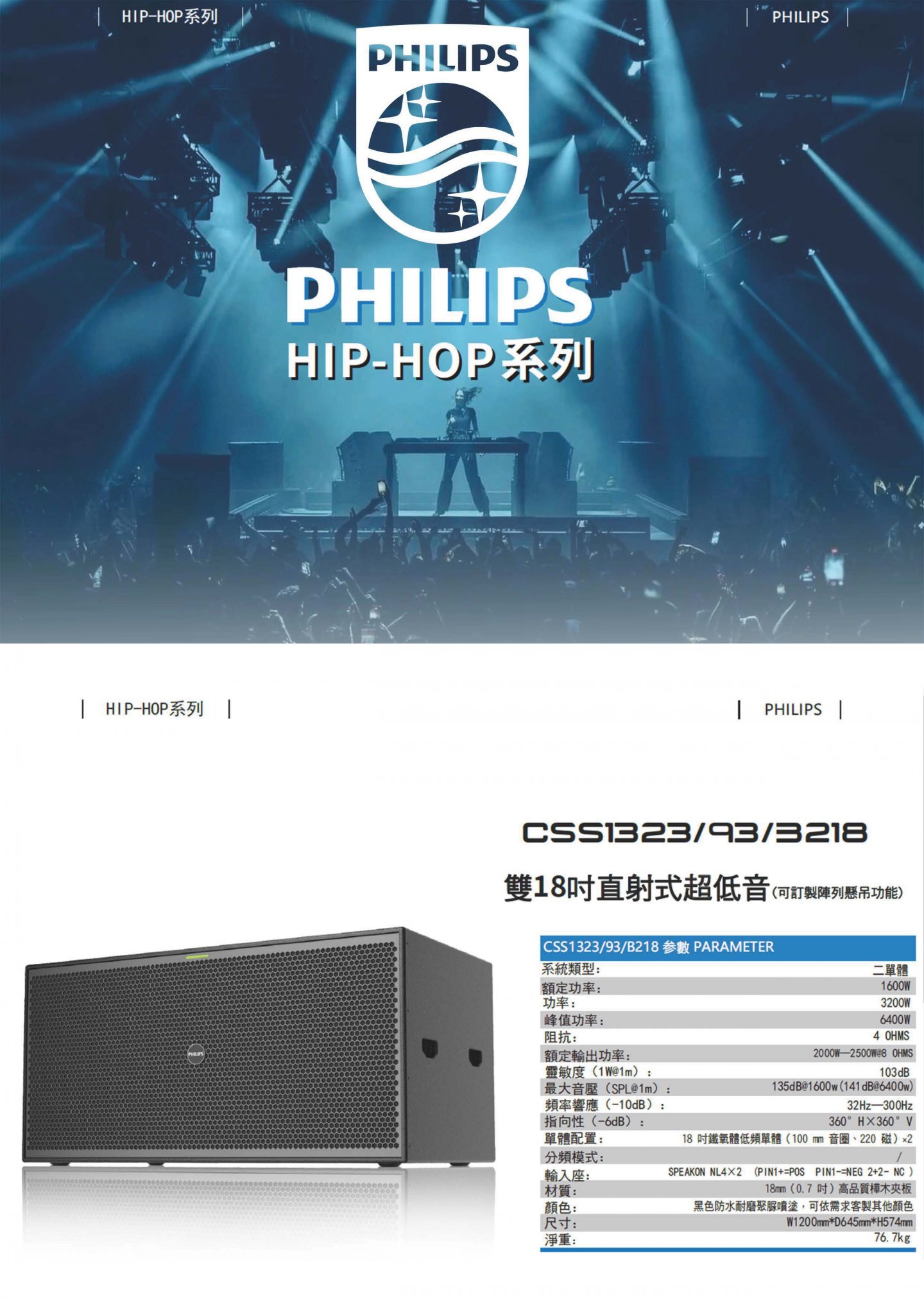 Philips CSS1323 93 雙18吋直射式超低音