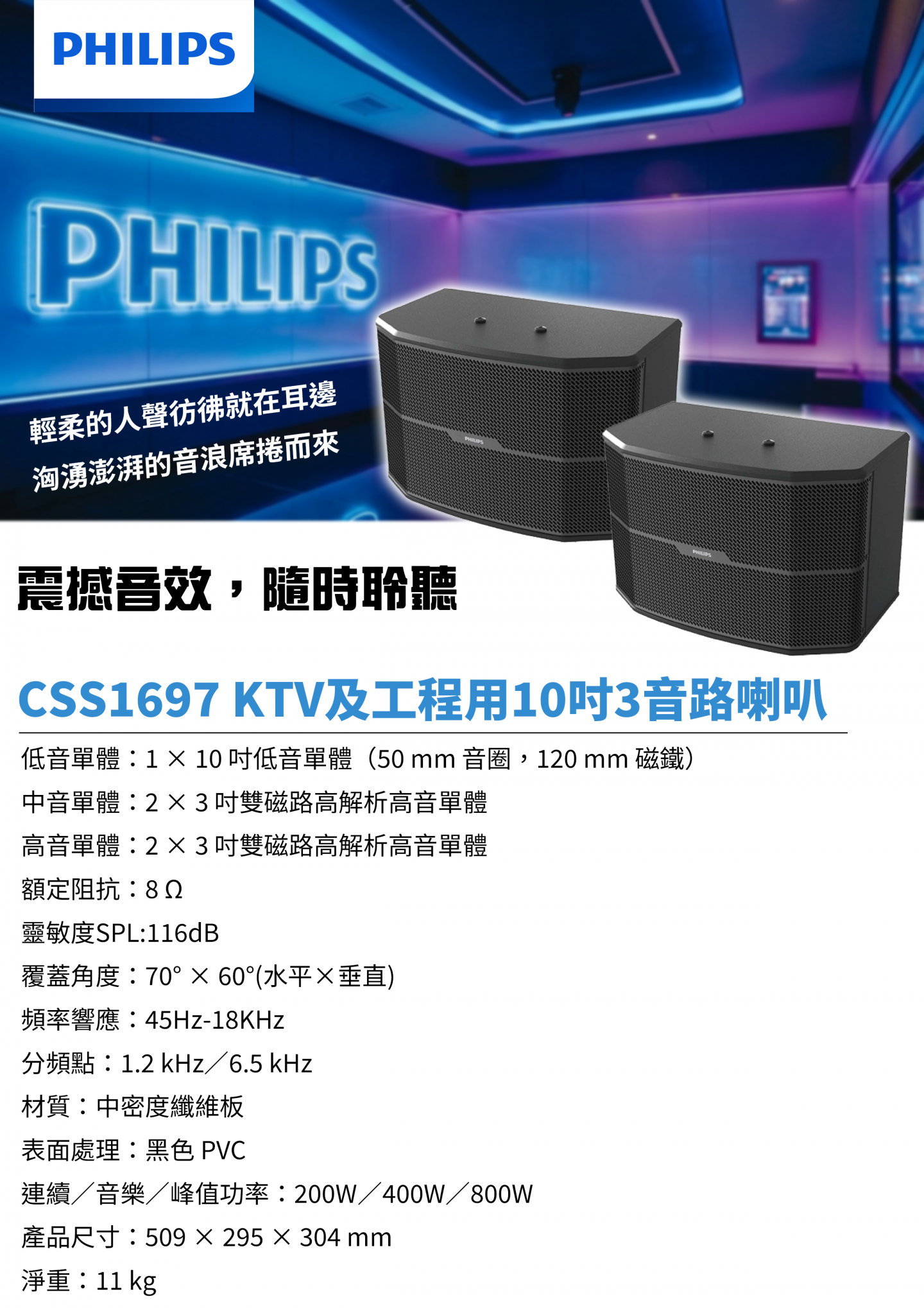 PHILIPS CSS1697 KTV及工程用10吋3音路喇叭