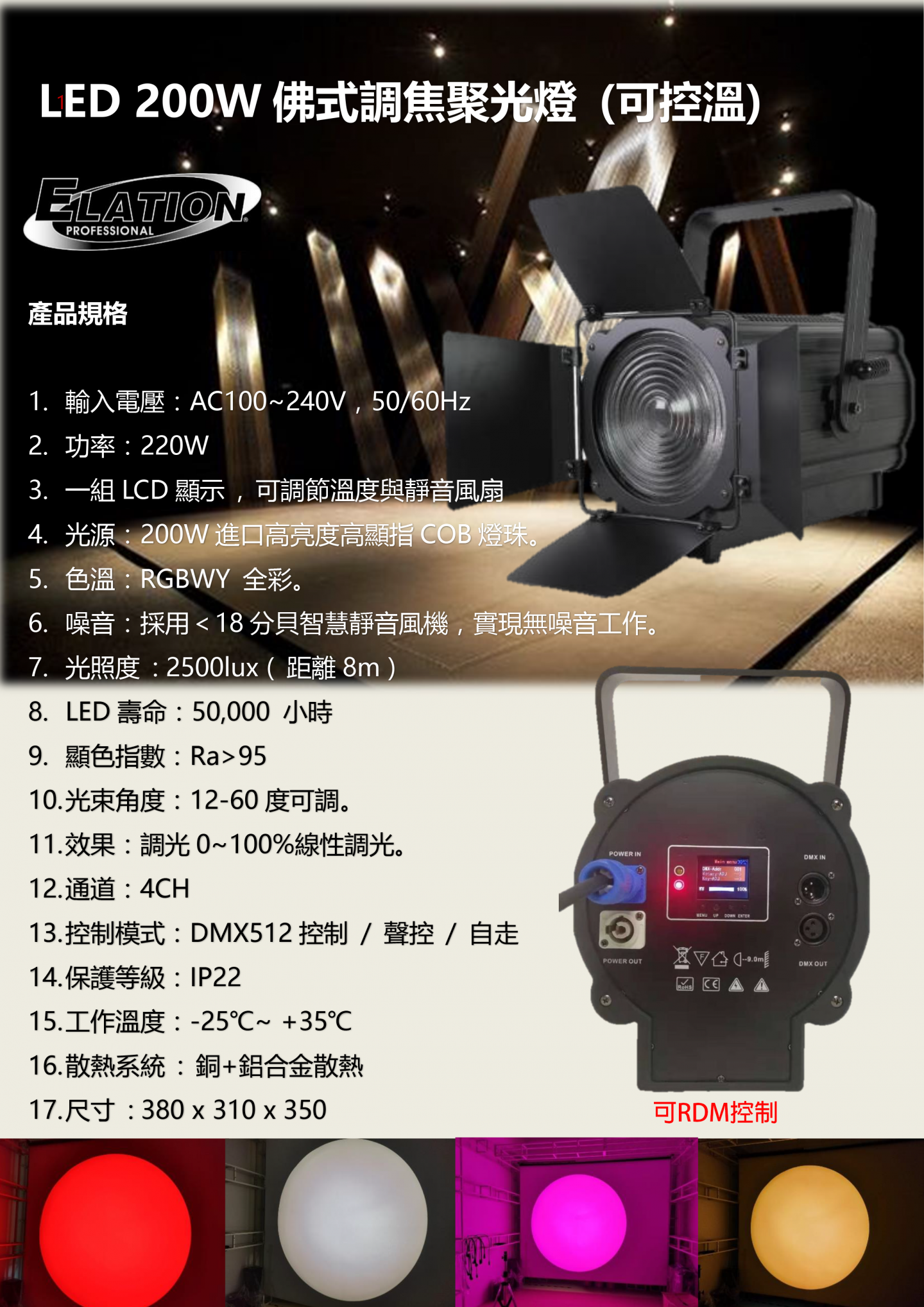 Elation LED 200W佛式調焦聚光燈 (可控溫)