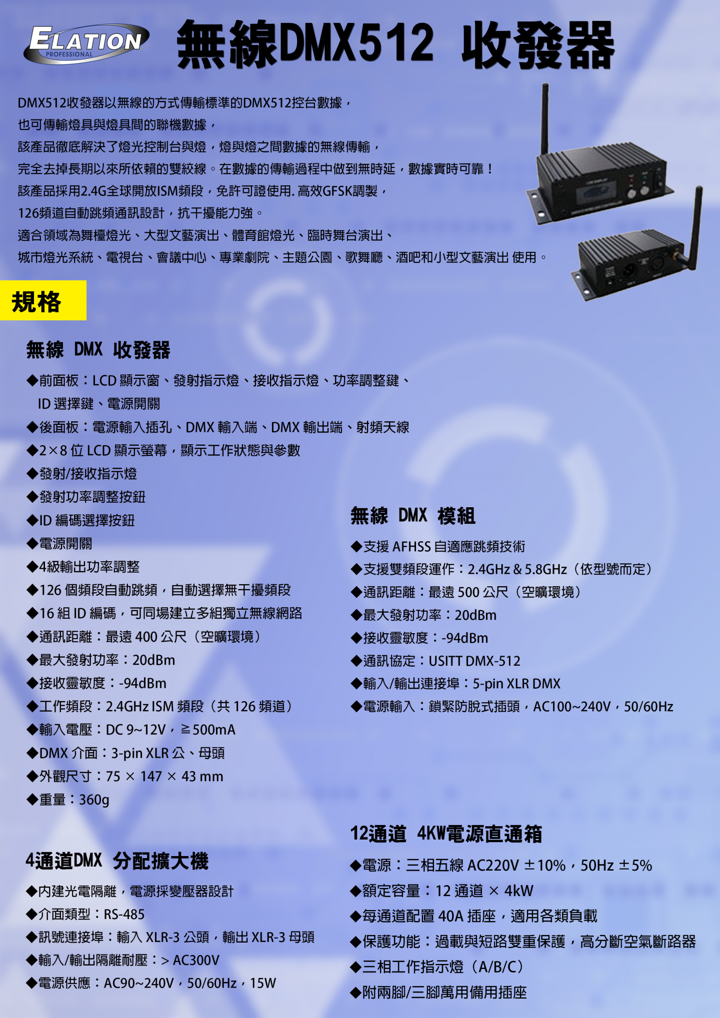 - 發送器收到DMX數據後選擇無干擾頻段發送數據,接收器向上改變通訊頻段,發送指示燈與接收指示燈同時閃動,直到收到相同ID碼的正確數據此時通訊正確建立