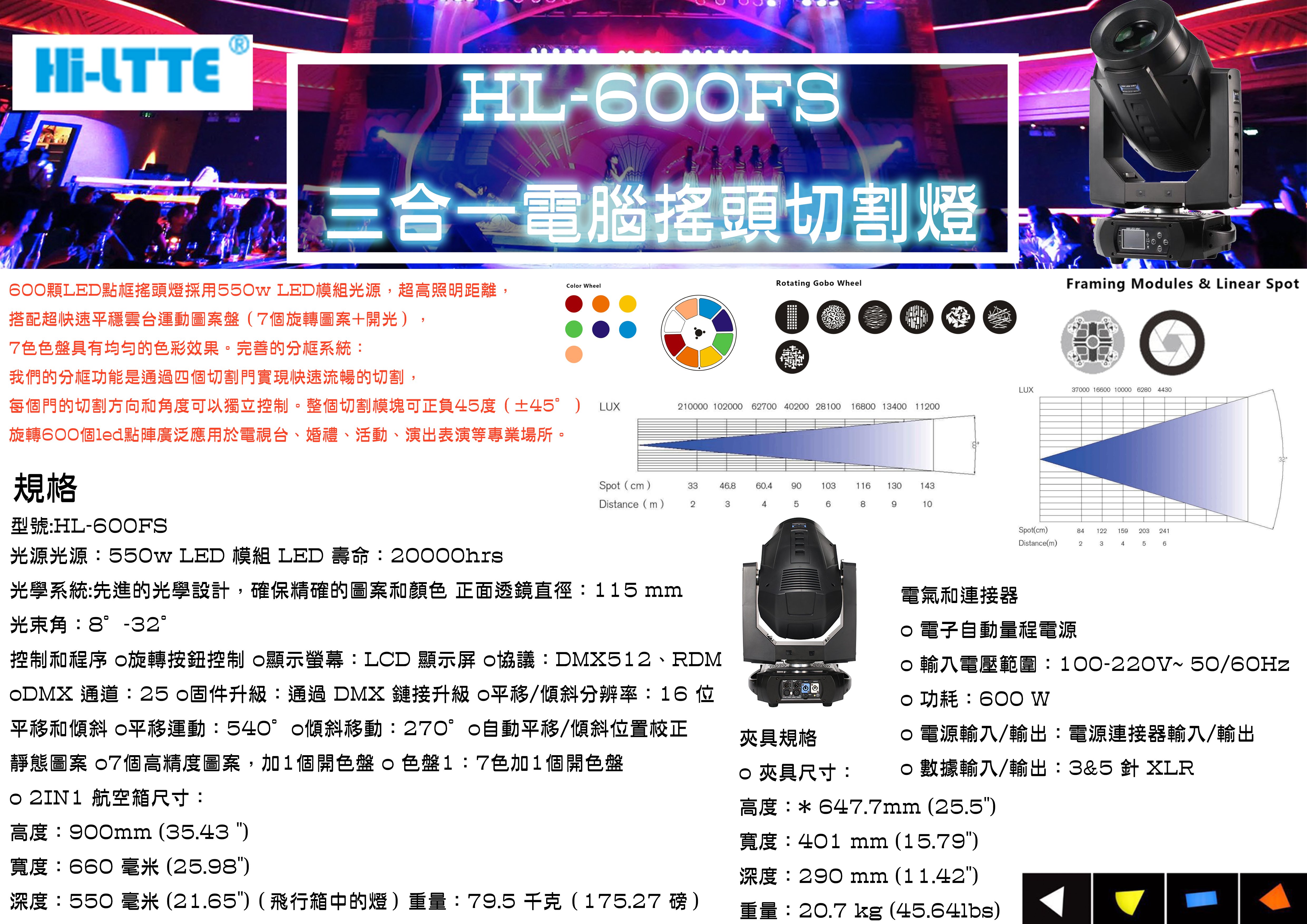 HI-LTTE HL-600FS 三合一電腦搖頭切割燈