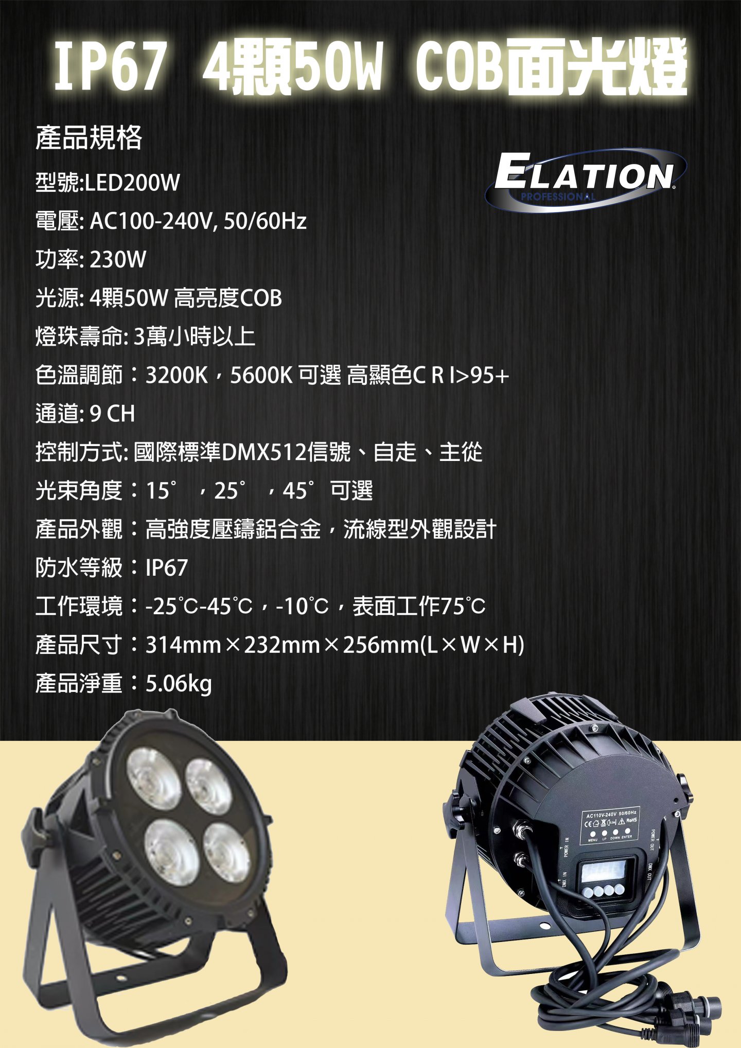 IP67 4顆50W COB面光燈