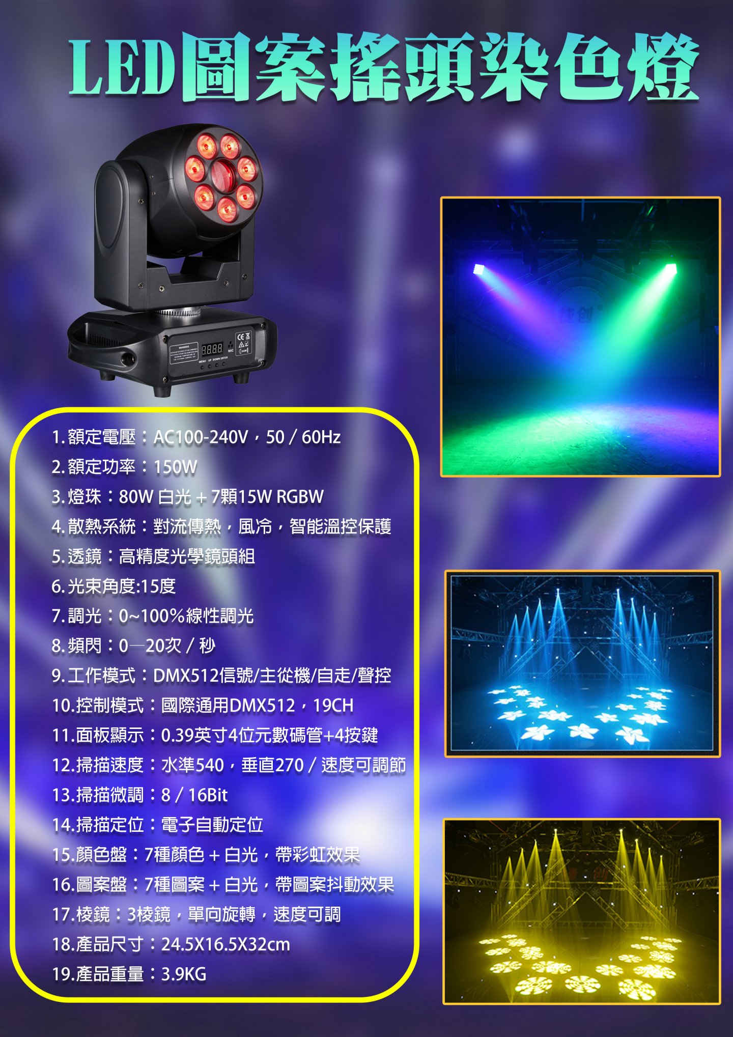 LED 7顆15W 圖案搖頭染色燈