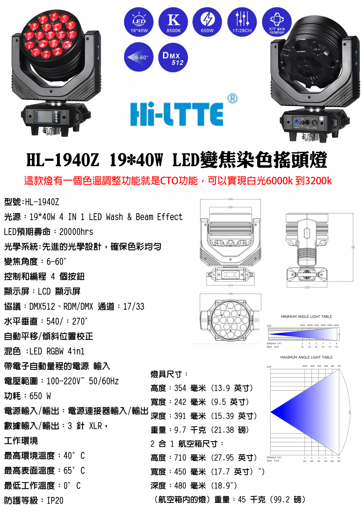 HL-1940Z 19x40W LED變焦染色搖頭燈