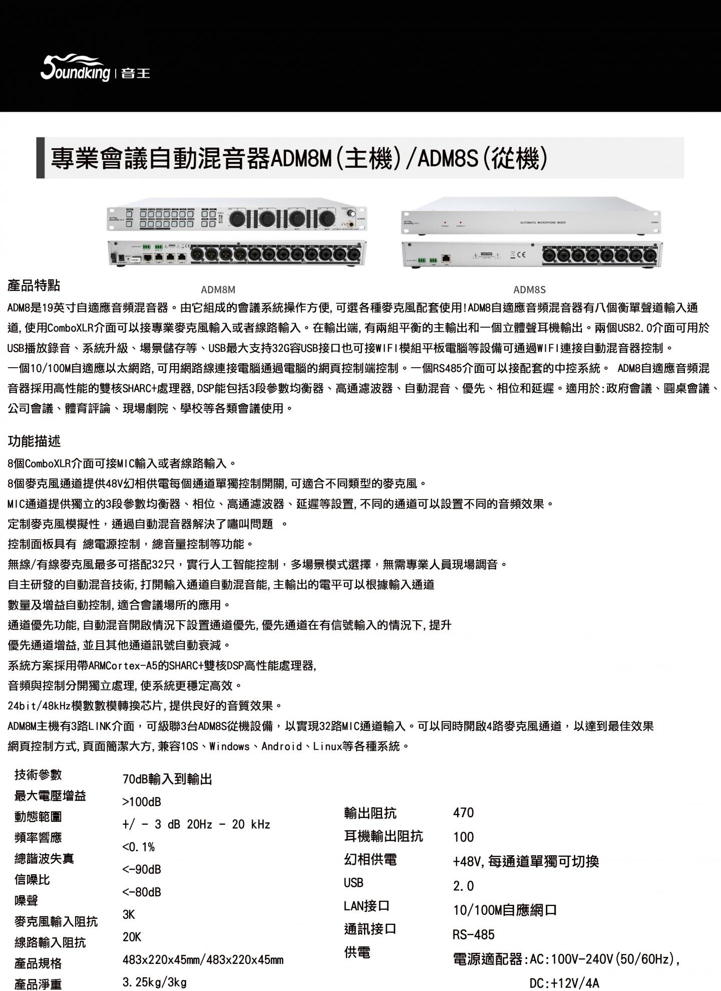 SOUNDKING ADM8M/ADM8S 專業會議自動混音機
