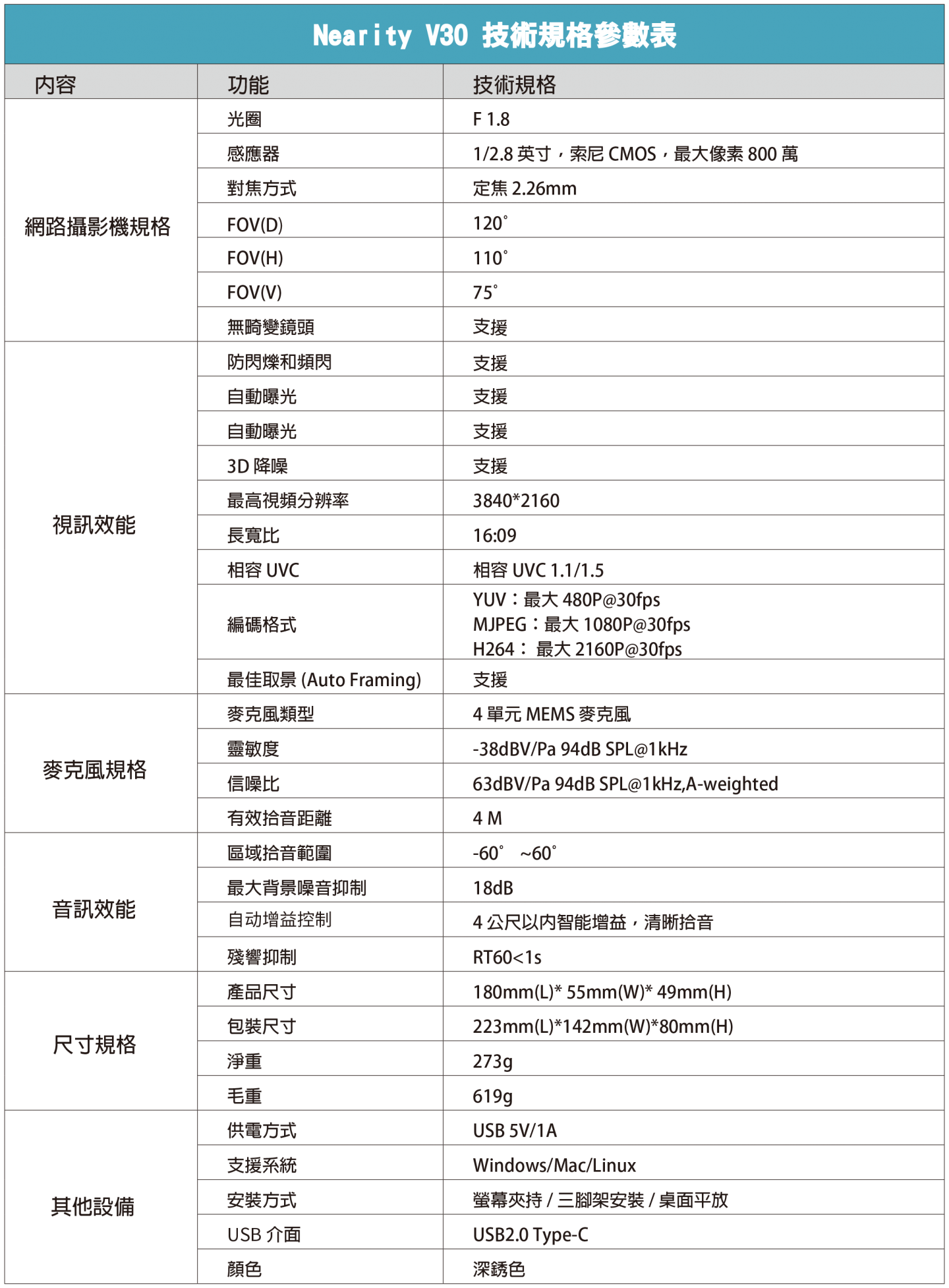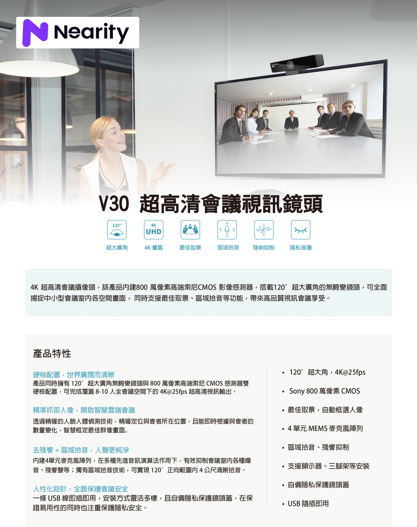 NEARITY V30超高清會議視訊鏡頭