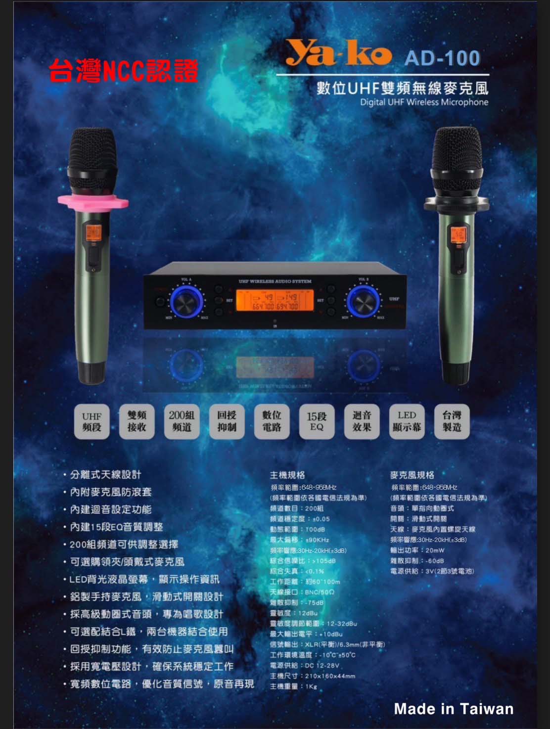 YA-KO AD1-00 數位UHF雙頻無線麥克風