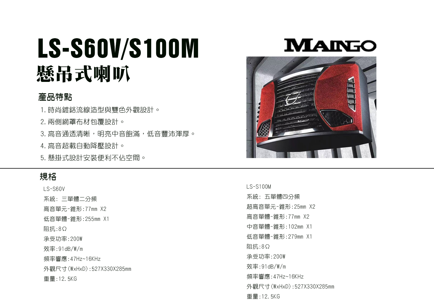 MAINGO LS-S60V/S100M 懸吊式喇叭