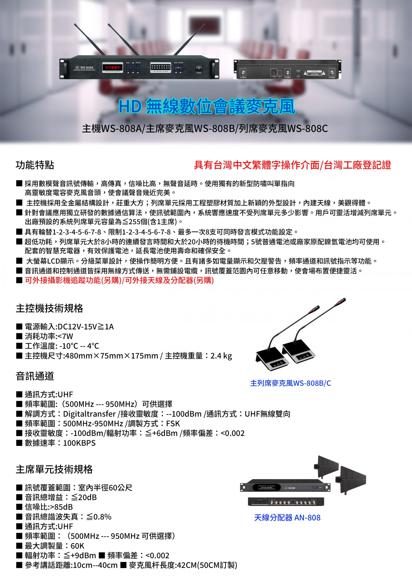 HD 無線數位會議麥克風 WS-808A/808B/808C
