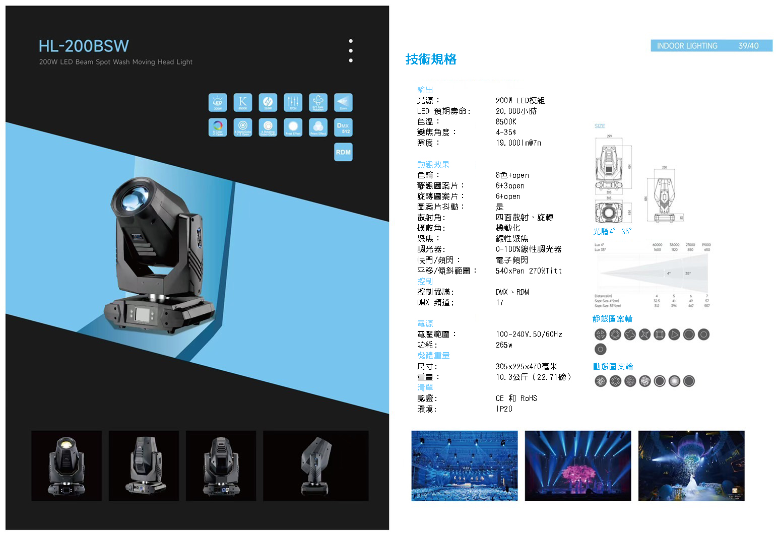 LED HL-200BSW(Beam/Spot/Wash )電腦搖頭燈