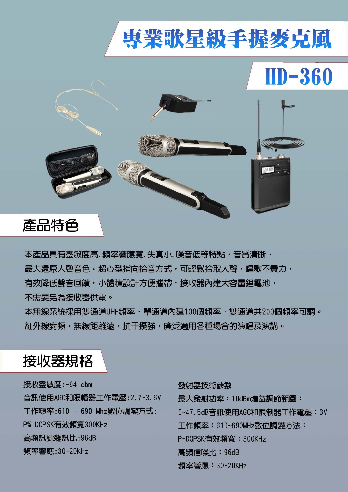 HD-360 專業歌星級手握無線麥克風