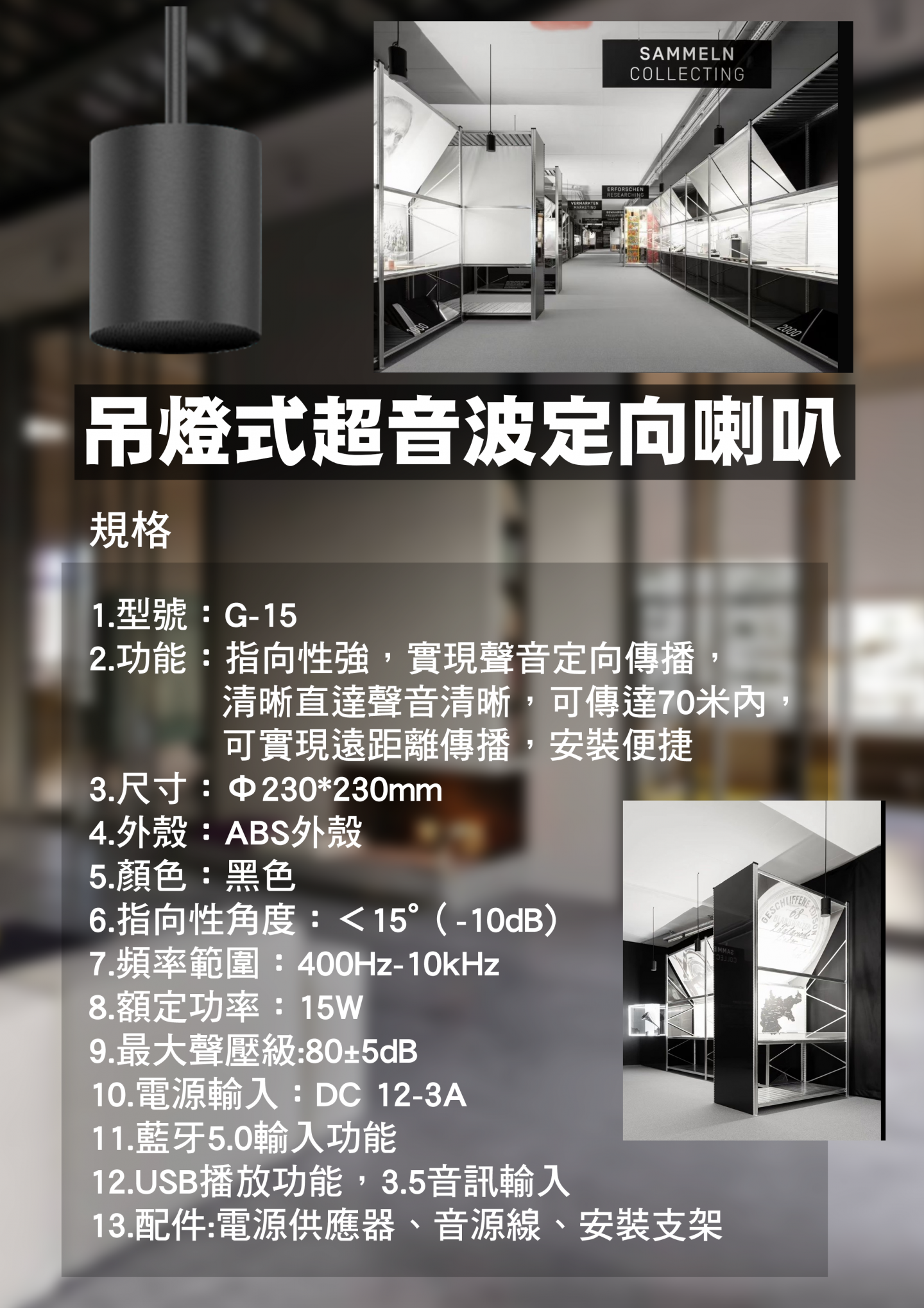 吊燈式超音波定向喇叭 G-15