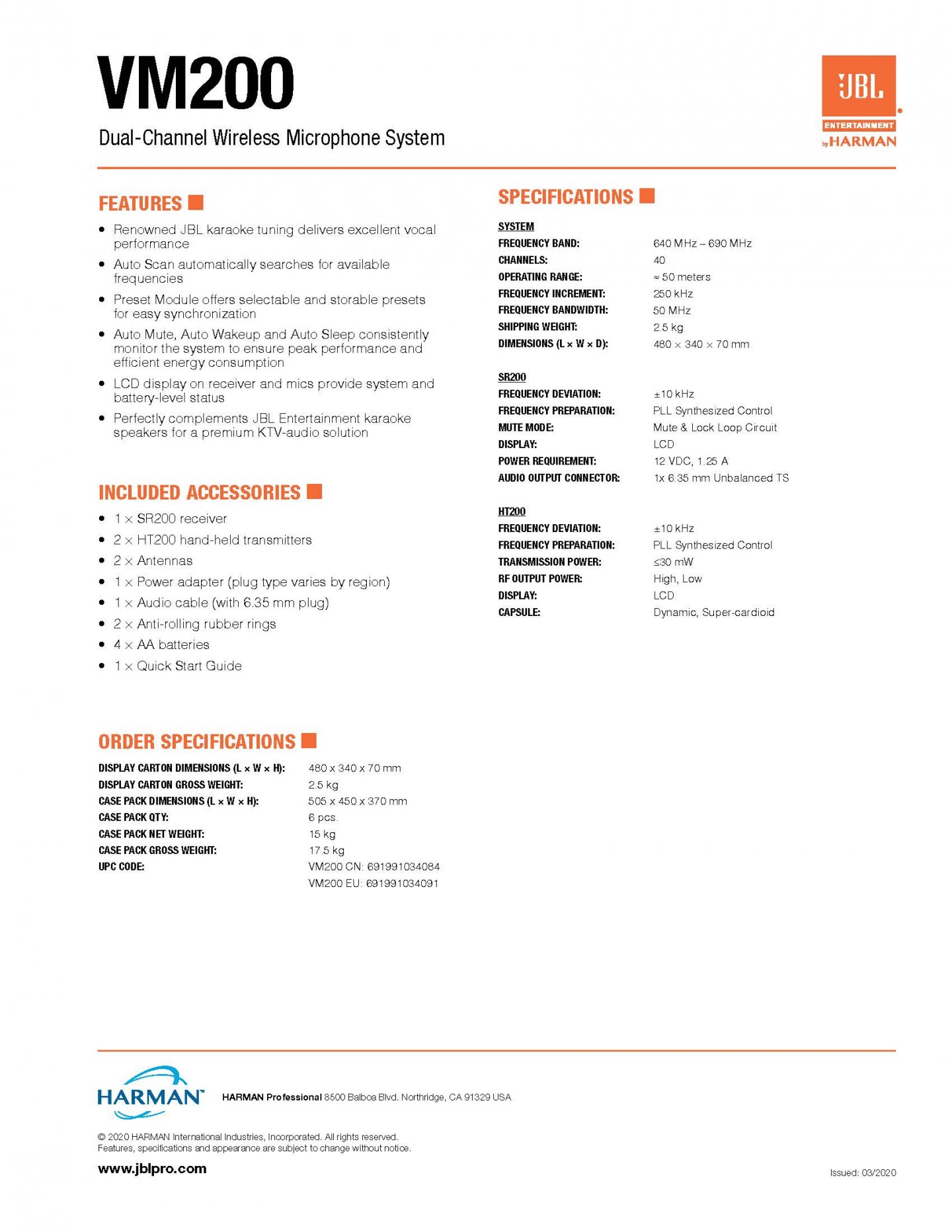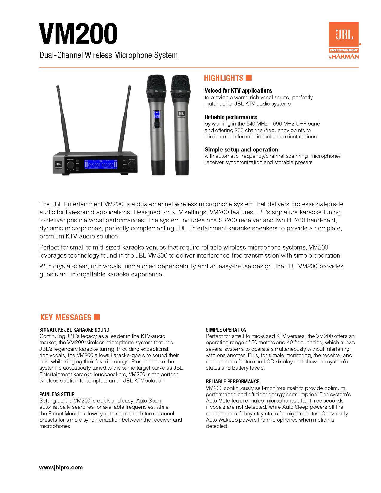JBL VM200雙頻道UHF無線麥克風