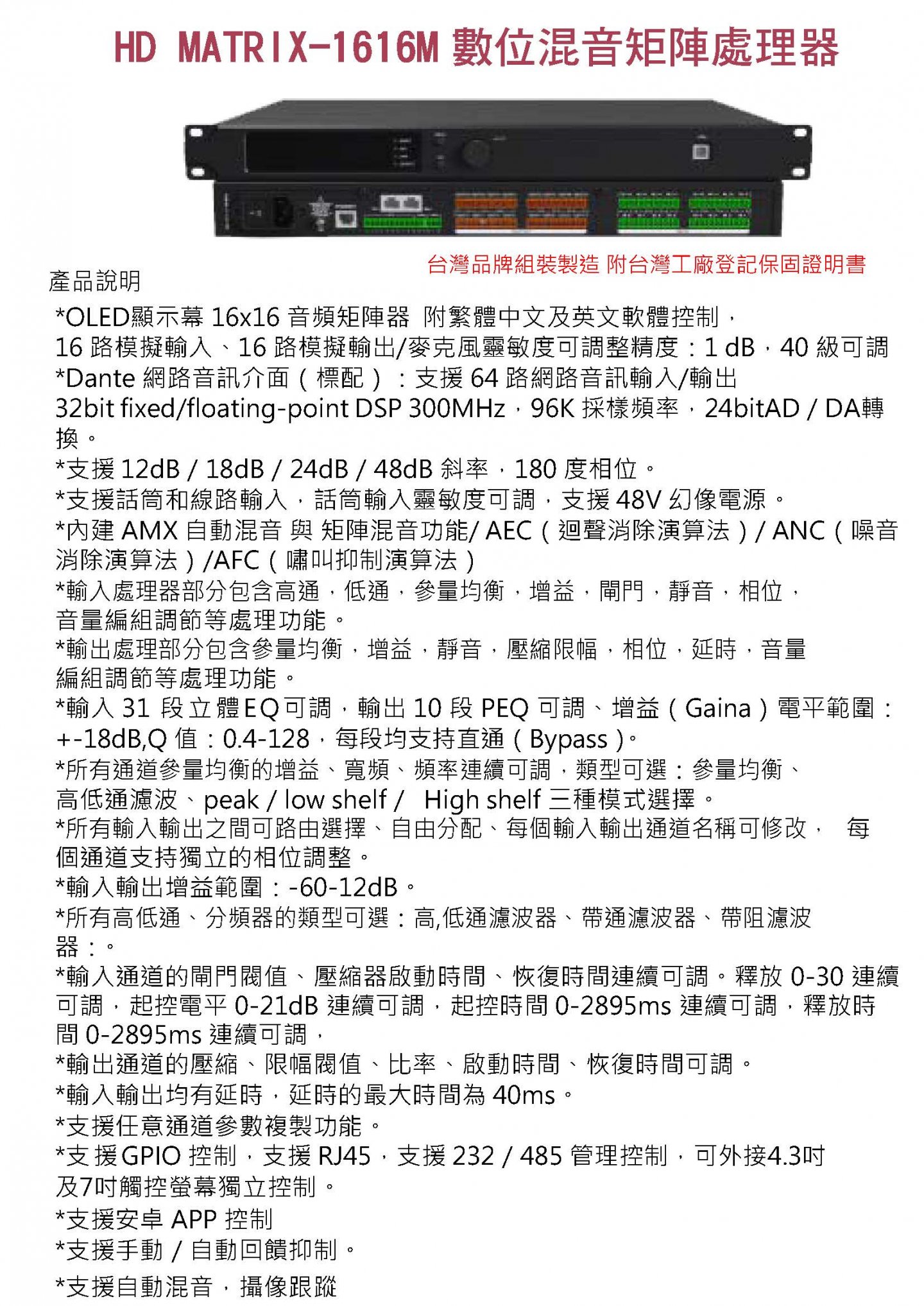 HD MATRIX 1616M 數位混音 矩陣處理器