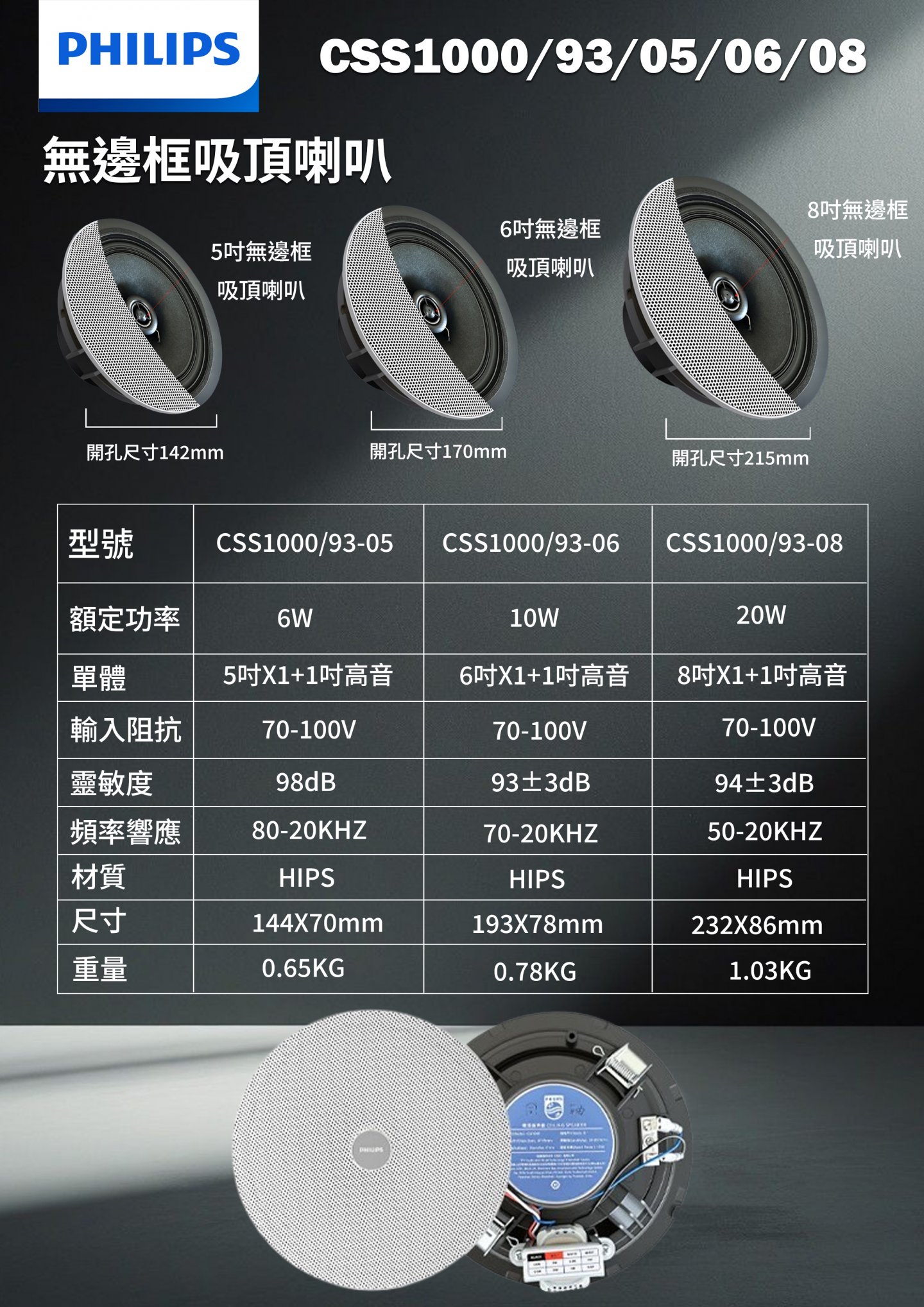 PHILIPS CSS1000 93 05/06/08 無邊框吸頂喇叭